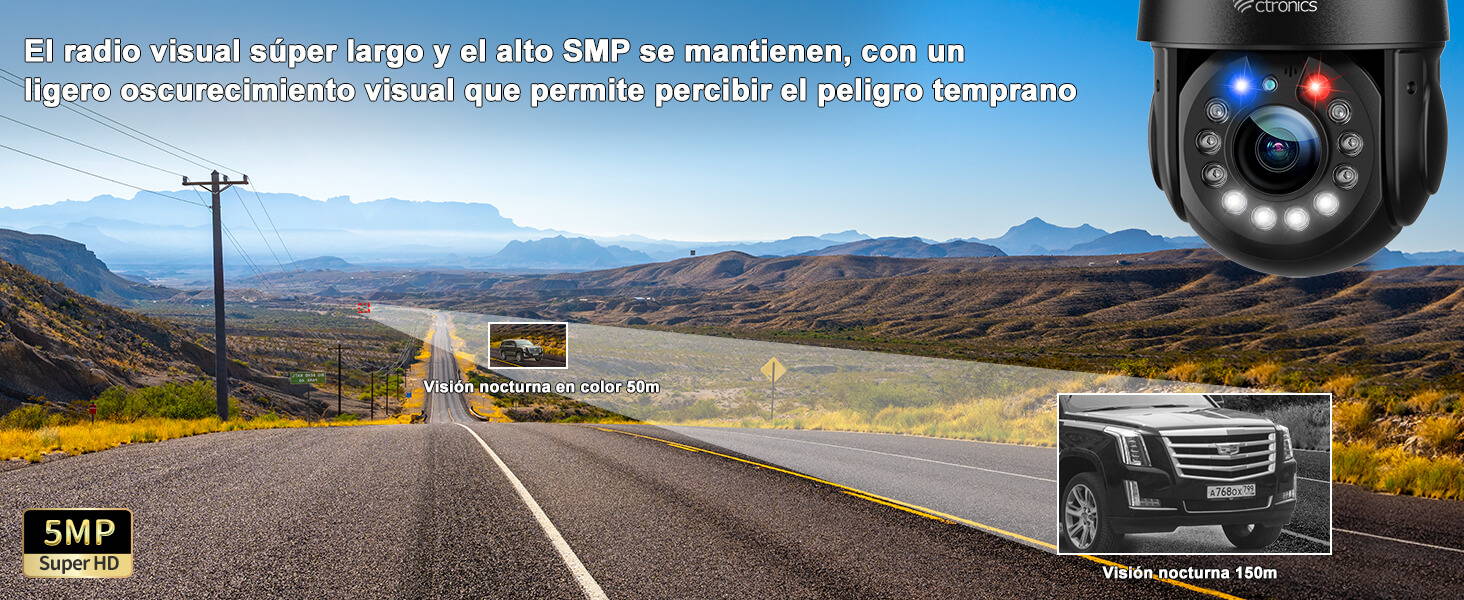 Esta cámara de seguridad para exteriores de 5 megapíxeles admite la detección de personas, distingue entre movimiento humanoide y no humanoide y reduce las falsas alarmas hasta en un 95%. Cuando esta cámara de seguridad PTZ de 5 megapíxeles detecta movimiento humanoide, lo rastrea automáticamente y envía una alarma a través de la APP Ctronics PRO.