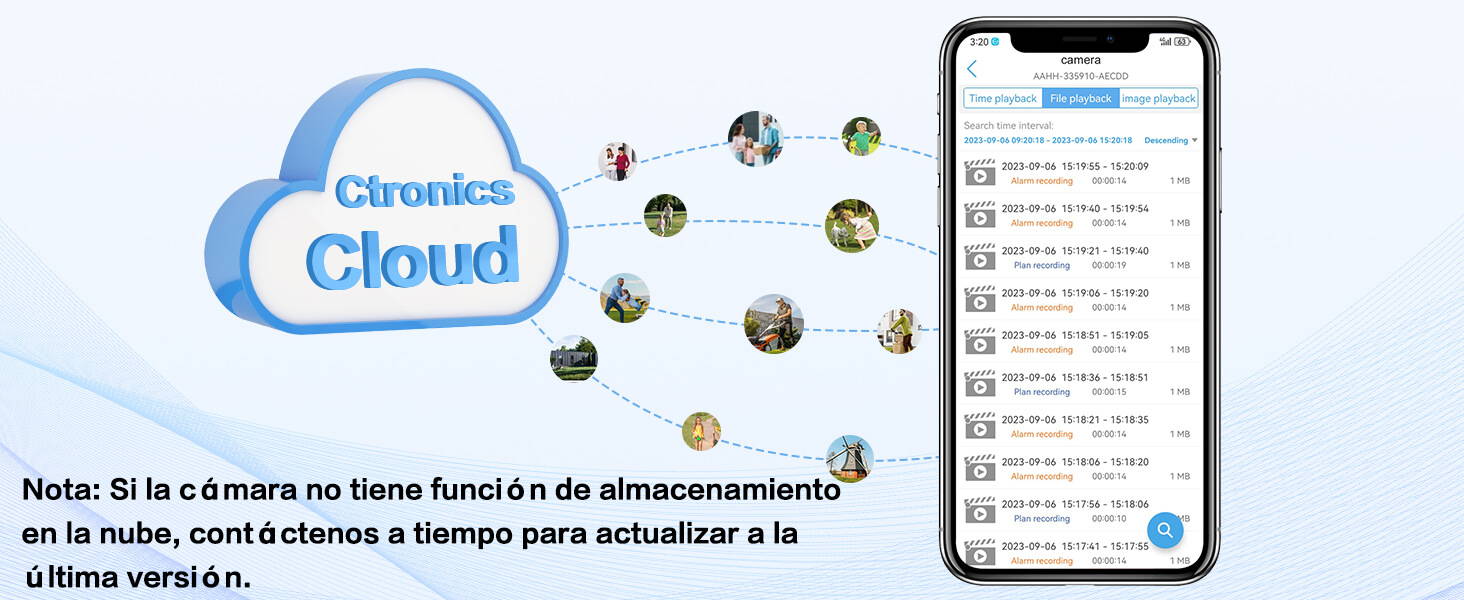 Las cámaras WiFi externas permiten almacenar vídeos y fotos en tarjetas TF de hasta 128 GB (excluidas), por lo que puede reproducir y descargar vídeos fácilmente. Puede reproducir fragmentos del despertador en su teléfono móvil en cualquier momento.